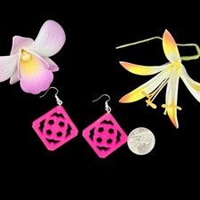 Handmade Large Hot Magenta Pink Jade Tile Breezeway Dangle Earrings Tiki Retro