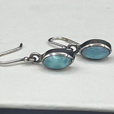 Handmade Larimar Earrings Marquise 925 Sterling Silver Dangles See pictures for measure Unpolished