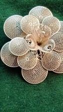 Handmade Mexican Silver Filigree Flower Brooch Pin