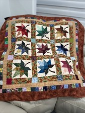 Handmade quilt autumn Splendor maple leaves Lap Blanket Throw 42”x42” Vtg