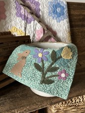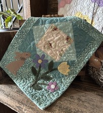 Perfect for Easter or spring décor, this piece features a whimsical garden scene with a rabbit and blooming flowers. Versatile Decor: Ideal for a small wall space, a tabletop centerpiece, or as a thoughtful gift for a quilt lover.
