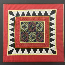 Handmade Red Geometric Embroidered Tapestry Folk Art Framed 19x19 Wall Decor
