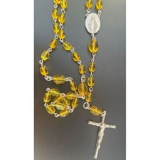 This beautiful yellow glass beaded rosary was made form 1950's New Orleans Glass Mardi Gras Czechoslovakia beads. The rosary will come in a box to use as a gift.