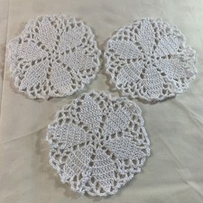 Handmade Set of 3 White Hand Crocheted Round Doilies 6 Inch Diameter