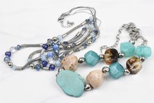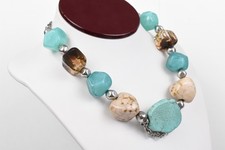 Handmade Studio 2pc Necklace Lot Aqua Brown Turquoise Magnesite Crystal Mesh
