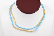 Handmade Studio 6 Strand Stretch Cord Necklace Gold Blue Faux Turquoise
