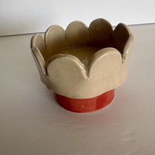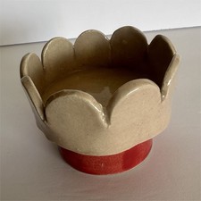 Handmade Studio Pottery Trinket Dish|Plant|Candle Holder Red Tan Scalloped Edge