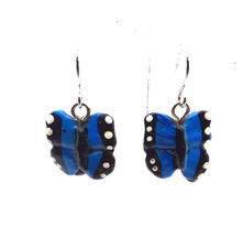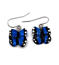 Handpainted Blue Butterfly Dangle Earrings .75 inch