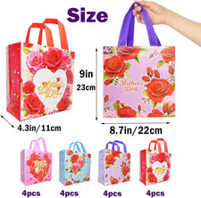 Happy Mother's Day Tote Gift Bags with Handles,16 Pcs Bulk Floral Non-Woven Love