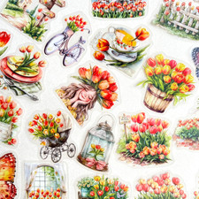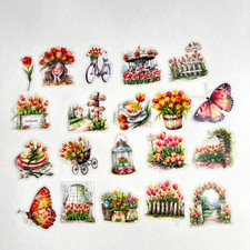 Happy Spring Tulip Stickers Easter Junk Journal Collage Scrapbooking
