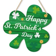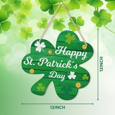 Happy St Patricks Day Shamrock Hanging Wall Door 12 x 12 inches,
