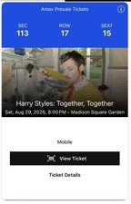 Harry Styles Together, Together Tickets MSG Aug 29, 2026 Sec 113, Row 17