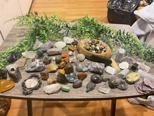 Haunted Doll crystals For Your Altar (mixed Selection Some Broken) Please Read. You are purchasing a nice size lot of assorted crystals. You will get that tan calcite soap holder dish. Some pieces of crystals are (BROKEN) please refer to all the pictures before purchasing. I believe all these crystals are around 4 lbs or more. Please ask all questions before purchasing. I do offer combined shipping but you NEED TO MESSAGE ME BEFORE CHECKING OUT !! Once you are checked out, I have no way of fixing the shipping price. No refunds or returns. Crystals are sold as is !!!!! BY PURCHASING YOU ARE ACKNOWLEDGING YOU HAVE READ THAT THERE ARE SOME BROKEN CRYSTALS IN THE BUNCH !! Thank you for looking !!!!