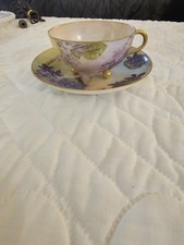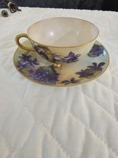 Haviland France Purple Floral Porcelain Cup & Saucer Gold Glossy Finish