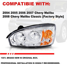 Headlight Assembly Chrome Amber Compatible with 2004 2005 2006 2007 Chevy Malibu
