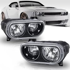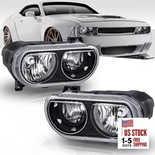 Headlight Assembly Compatible for 2008-2014 Dodge Challenger Front Lamp Black Housing Clear Lens Clear Corner (set of 2). Compatible for 2008-2014 Dodge Challenger; Not Compatible for Models W/Factory HID Headlights.OEM Part Number: 5028779AB, 5028778AB, CH2502219, CH2503219.