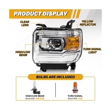 Headlight Assembly Compatible with GMC Sierra 2014-2018 1500 | 2015-2019 2500...