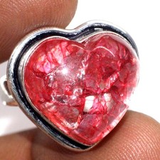Heart Red Cracked Crystal 925 Silver Plated Ring US 6 Superb Gift MJ