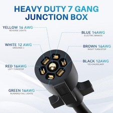 Heavy Duty 7 Way Trailer Cord with 7 Gang Waterproof Junction Box, 8FT