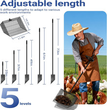 Heavy-Duty Chicken Poop Scooper with Adjustable Steel Handle and Detachable Rake