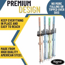 This sturdy vertical rack is made of the strongest powder-coated steel and is both compact and space-saving. ULTIMATE SKI ORGANIZER: Snow Ski Rack is a sturdy, space-saving storage system for your snow skis, poles, even small snowboards.