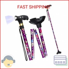 Slip-resistant Cane: walking cane has an Anti-slip quad base made of strong slip-resistant rubber. - Folding Cane: Easily folds to compact 11" for convenient storage and traveling. The bright light will safely guide you in the dark.