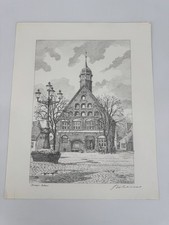 * HEINZ WEHLISCH DRAWING BRIM TOWN HALL VIEW SIGNED