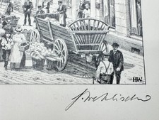 Kornmarkt. vom Künstler Heinz Wehlisch. unten rechts mit Bleistift handsigniert. Schleswig. zum Verkauf steht eine Zeichnung. Original Zeichnung. Zeichnung: 23x 16 cm. bekannt für seine deutschlandweiten Sparkassenbilder.