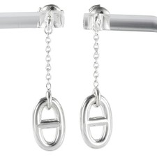 HERMES Farandole Earrings Chain Dunker Earrings MM Medium Model Silver Second Ha