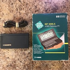 The Hewlett-Packard HP 200LX Palmtop PC is a vintage handheld computer with 4MB of RAM, part of the HP Palmtop series. It comes with a black and white LCD screen and runs on the Pocket PC operating system. This PDA also features an expansion slot for additional functionality. The product includes the original box and is ideal for collectors or those looking for a retro piece of technology to add to their collection.
