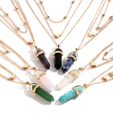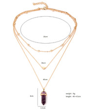 Hexagonal diamond gemstone natural stone heart love copper bead chain multi-laye
