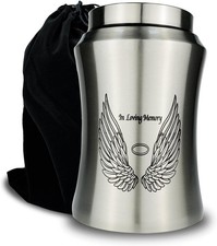 High-Quality Cremation Urn with Angel Wings Design. Why Choose This Cremation Urn?. A perfect homage to your cherished ones. Elegant Design : Features a graceful waistline radian that is both ergonomic and aesthetically pleasing, making it easy to hold.