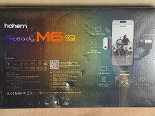 The Hohem iSteady M6 Kit is a professional 3-axis smartphone gimbal stabilizer designed for group selfies, live streaming, and vlogging. It features iSteady 7.0 stabilization technology, an AI vision sensor with large rotation angles for face and body tracking, and an adjustable fill light for cool and warm lighting options. The gimbal stabilizer has a tilt range of 335°, pan range of 360°, and roll range of 335°, with a 0.91 inch OLED display for monitoring battery level, gimbal parameters, and more. It is suitable for iPhones and various Huawei models, with a net weight of 551g.