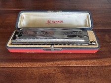 This HOHNER Vintage 64c 4 Octave Professional Harmonica comes in its original box and is a true gem for any harmonica enthusiast. Made in Germany, this chromatic harmonica is of the highest quality and is perfect for both beginners and professionals alike. The key of this harmonica is in C, making it a great addition to any musical instrument collection. With its vintage design and superior sound quality, this harmonica is sure to impress. The HOHNER brand is known for its excellence in instrument design and this harmonica is no exception. Whether you're a seasoned player or just starting out, this harmonica is a must-have for anyone who wants to explore the world of harmonica music.