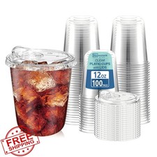 Homestockplus 100pk 12oz Clear Plastic Cups Sip Lids Cold Drinks