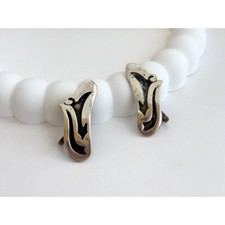 The earrings have a screw back enclosure. Not marked 925 but tested positive by chemical testing. Still worthy of being loved and cared for as a part of your personal collection. Southwest style with a modernist style.