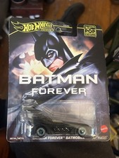 The Hot Wheels Batman Forever Batmobile is a diecast toy vehicle from the Hot Wheels Batman series. This model is an iconic representation of the Batmobile from the Batman Forever movie, featuring intricate details and design elements that collectors and fans of the franchise will appreciate. With its sleek and stylized look, this Hot Wheels Batmobile is a must-have for any Batman enthusiast.