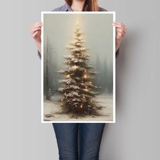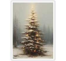 Huabsad Vintage Christmas Tree Wall Art Retro Lighted Winter Pine Botanical A...