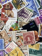 This product is a huge lot of over 200 used US postage stamps from the 1930s to the 1990s, featuring a variety of denominations such as 2 cents, 1 cent, 32 cents, 13 cents, and 25 cents. The stamps are off paper and feature a variety of topics. You will receive the exact stamps shown in the photos.