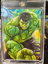 The Hulk Sketch Munchies Card 1/1 is a unique and collectible non-sport trading card featuring the popular Marvel character, Hulk. This limited edition card is autographed by the character himself and made of high-quality card stock. It is a rare find for fans of Marvel's Cinematic Universe and is sure to be a prized addition to any trading card collection.