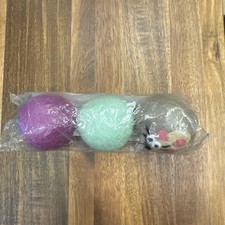 The Hustle & Blush Felted Cat Toys 3 Pack features a set of two 2-inch cat and mouse toys made from felt material. These interactive toys are designed to provide entertainment and exercise for your cat, engaging their natural instincts and stimulating their senses. With the high-quality craftsmanship and adorable design, these cat toys are sure to bring joy and excitement to your feline companion's playtime.
