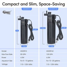 hygger Quiet Submersible 4 in 1 Internal Fish Tank Filter 80-120GPH 3-20 Gallon