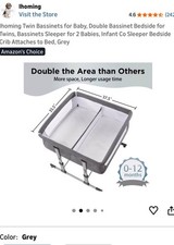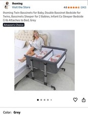 Ihoming Twin Double Bassinet Bedside Sleeper Grey Breathable Mesh Portable