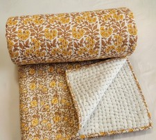 indian handmade Cotton kantha Quilt hand Block print king Size Bedspread Blanket