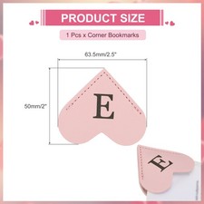 Initial E Corner Bookmarks,  Heart Shape Leather Book Marks Markers, Pink additional preview