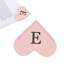 Initial E Corner Bookmarks,  Heart Shape Leather Book Marks Markers, Pink