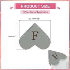 Initial F Corner Bookmarks, Heart Shape Leather Book Marks Markers, Gray