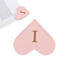 Initial I Corner Bookmarks,  Heart Shape Leather Book Marks Markers, Pink