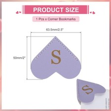 Initial S Corner Bookmarks, Heart Shape Leather Book Marks Markers, Purple