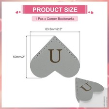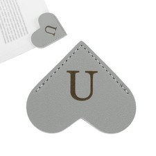 Initial U Corner Bookmarks, Heart Shape Leather Book Marks Markers, Gray
